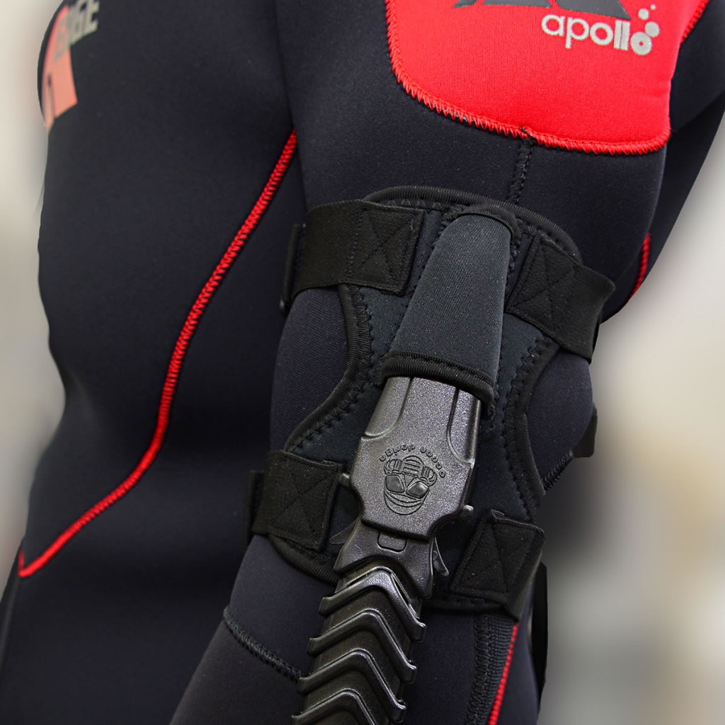 Optimised for rebreather use. Super soft and comfortable low volume black silicone skirt for a perfect fit with revolutionary push button buckles that allow quick and easy adjustments.